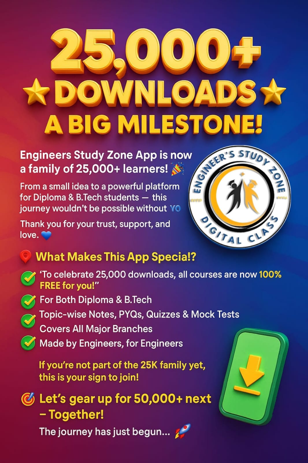 🌟 25,000+ Downloads – A Big Milestone! 🌟Engineers Study Zone App is now a family of 25,000+ learners! 🎉📚